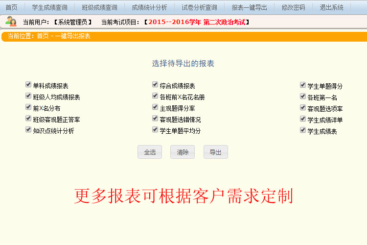 設置具有不同操作權限的用戶,實現對主觀題部分的評閱,自動題卡上的學生信息,并通過設置不同用戶權限,層層監(jiān)控把關,保證了閱卷過程中公平、公正的原則。
