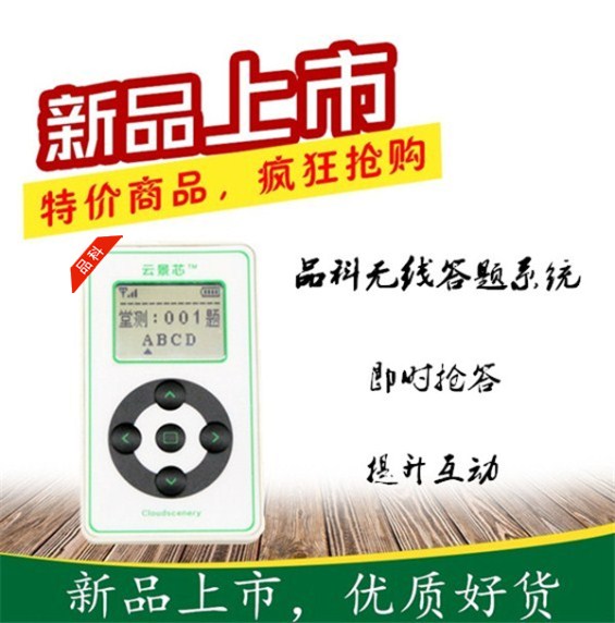 無線答題系統 是基于2.4G無線射頻技術特點設計而成的,是一個輔助教師進行課堂互動的工具,是一套集教學互動反饋、教學評測及游戲活動于一體的課堂互動反饋系統。學生人手一個與校卡融合的答案發送器,根據作答模式使用校卡按鈕參與回答老師的提問;老師通過界面功能按鈕與學生進行課堂互動,互動參與情況會生成報告在“云”端展現。