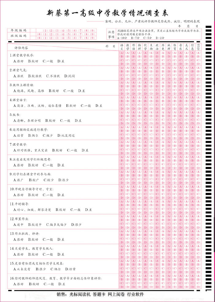 學(xué)生問卷評教卡