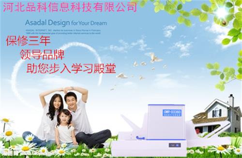 銀川是個好地方,河北品科信息科技有限公司在銀川推出新款閱讀機D3360. 產品的適用范圍:國內外的考試測評,志愿統計,考試報名,各行各業的干部的測評,考試,選舉。 產品優點:速度8級可調,閱讀速度更快,更準確。第三代機器相比第二代機器采用更穩定的軟件架構和更強的硬件芯片。得以保障更快、更準、更穩. 售后服務:1.首次購買品科考試閱讀機,我們承諾上門服務,給客戶詳細講解機器和軟件的使用,調整,對機器的簡單維修和保修方面的知識。 2.可以提供效率高快捷的光標閱卷機上門租賃服務,我們根據客戶的具體要求,制定專用的軟件及服務計劃,給客戶提供上門服務,效率高快捷的幫助客戶完成需要統計的數據或是考試、考核項目。 3.我們公司銷售的光標閱讀機均可以提供應急備用機。即在客戶購買我的機器后如果需要在某次大型活動、考試中使用,我們會根據客戶要求提供1臺或多臺備用機,給客戶保證順利完成任務,備用機在保修期內是不收取費用的! 維修服務:我公司技術人員可送貨上門,給用戶進行使用指導和技術培訓。產品保修3年,保修內容包括機器損壞的任何配件,均可發回原廠進行維修翻新,使用時間可延續10年之久! 我公司產品均為兩種連接方式:USB口和COM口(串口連接),可滿足各種臺式和筆記本電腦,并且我們產品的軟件均可在Windows 98以上的系統中運行!