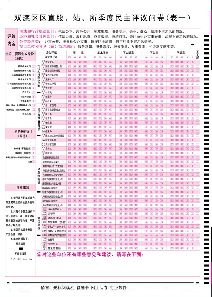 品科閱卷機讀取速度快。 以往閱讀機的標稱速度均為理論閱讀速度,與實際閱讀速度相差很大,該機在設計中充分考慮了實際閱讀中的種種影響,真正實現了全自動高速閱讀。實際閱讀速度大于每秒3張信息卡; 使用簡單、方便。 機器作簡單,維護方便。測試軟件簡單易用;驅動程序接口開放、簡單,用戶進行二次開發極為方便;調試簡便,真正實現了智能化調試。